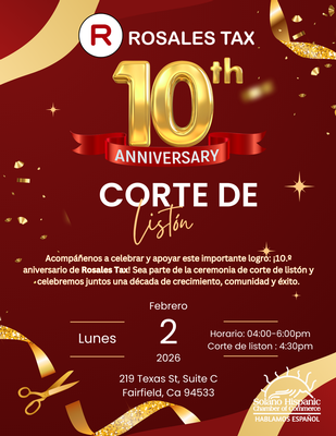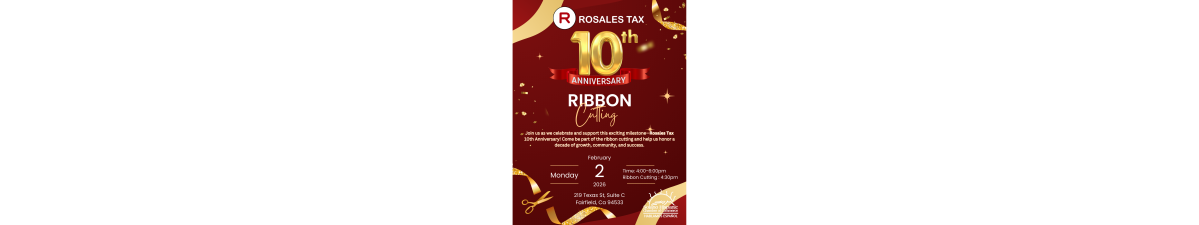 We’re excited to celebrate Rosales Tax’s 10th Anniversary with a special ribbon cutting! Join us as we honor a decade of growth, community, and success.
