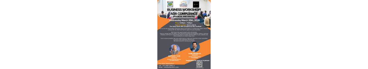 Is your business ADA compliant? Join us for an important workshop on Physical and Digital ADA Compliance featuring Anthony Tave and Gabe Gramajo. Learn practical steps to protect your business, improve accessibility, and leave with real tools you can implement right away.